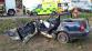 V Kočí se střetl kamion s osobním vozem. Hasiči ze zdemolovaného vozu vyprošťovali řidiče