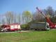 Hasiči zjistili, že řidič není zraněn a nákladní vozidlo leží na boku v příkopě, na nádrži s naftou. Ručním nářadím odstranili zeminu kolem nádrže, aby zjistili případný únik nafty. Nafta, ani jiné provozní kapaliny, z vozu nevytekly. Náklaďák převážel šest kotlů na tuhá paliva, které nebyly poškozeny, ale zvyšovaly hmotnost vozu. Velitel zásahu si proto vyžádal asistenci vyprošťovací techniky z požární stanice Otrokovice.