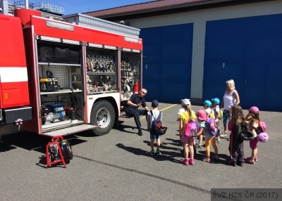 Ve výcvikovém středisku v Brně se v dopoledních hodinách vystřídalo téměř 400 dětí z deseti mateřských a základních škol z blízkého okolí. Byla pro ně připravena prohlídka hasičských aut, možnost prolézt si klecovým polygonem, ukázka lezeckých technik hasičů nebo předvedení evakuace pomocí evakuačního rukávu, kterou si vyzkoušely i některé paní učitelky. Součástí programu bylo i preventivně výchovné povídání o správném hašení požáru rostlinných tuků, završené efektní ukázkou špatného způsobu hašení. Nedílnou součástí dne dětí je i tradiční hašení domečku a stříkání z lafety, které si zvláště v tomto horkém dni děti velmi užily. Jako poděkování nám pomalovaly cesty a chodníky nádhernými obrázky a od nás na oplátku obdržely pamětní fotografii své třídy u hasičského auta. V odpoledních hodinách pokračovaly ukázky a zábava pro děti našich zaměstnanců, které se v doprovodu rodičů pohybovaly po celém areálu mezi připravenými stanovišti.