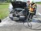Autu za jízdy během požáru přestaly fungovat brzdy. Kolem jedoucí řidiči poskytli k uhašení vlastní hasicí přístroje.