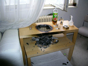 - Svíčky umísťujte v dostatečné vzdálenosti od hořlavých materiálů, rozhodně je nedávejte k oknům do průvanu, blízko záclon, do těsné blízkosti sedaček či jiných textilií, ani na poličku nebo skříň, neboť oheň se rychle přenese na nábytek a zařízení bytu.