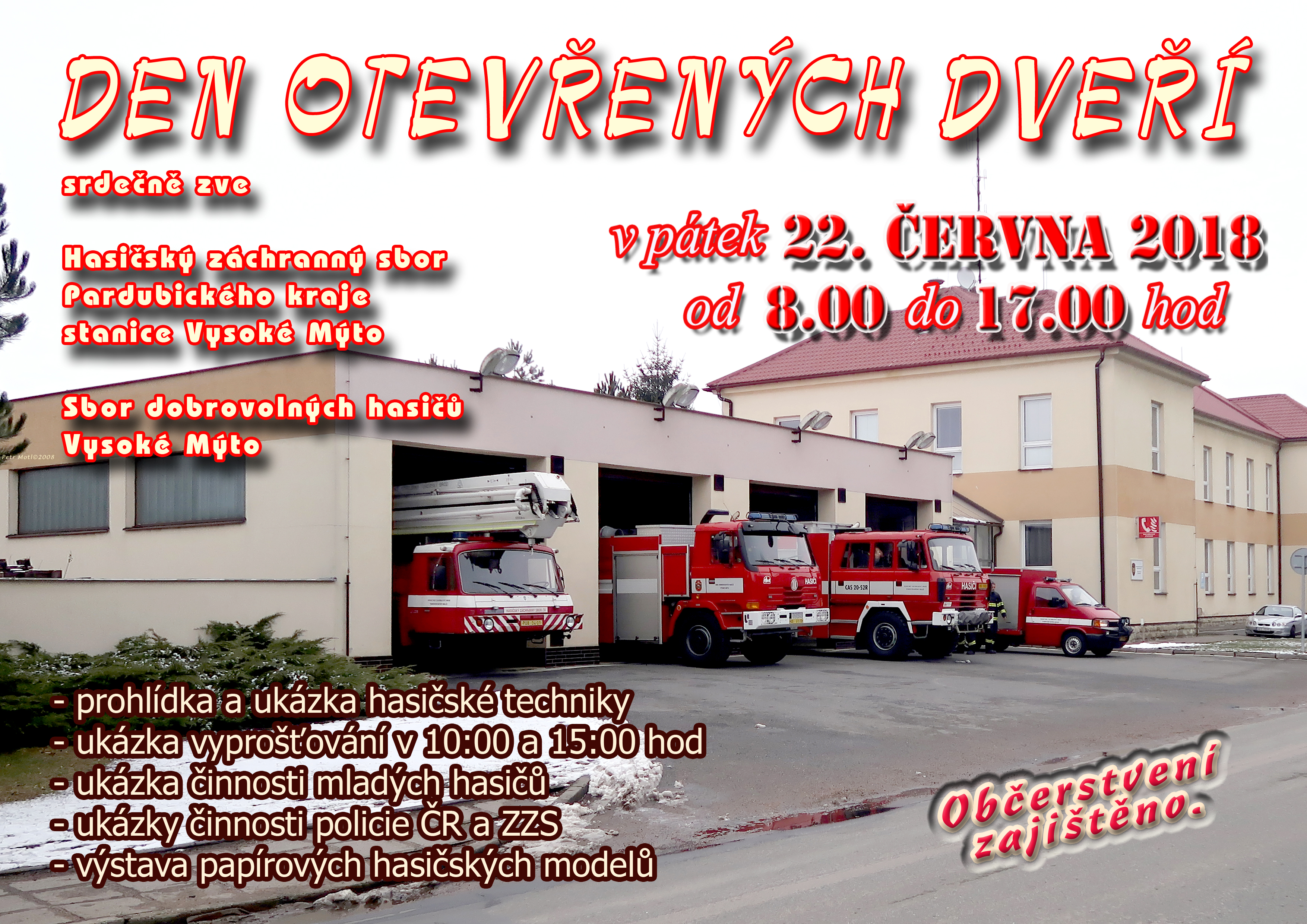 Dne 22. června 2018 se na stanici ve Vysokém Mýtě uskuteční již tradiční Den otevřených dveří. Od 8 do 17 hodin máte možnost zhlédnout hasičskou techniku.