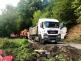 Vyprošťování kamionu s kamením ve Skřipově z příkopu