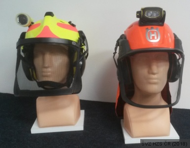 Jednou je tzv. „záchranářská“ přilba DRÄGER HPS 3100, která je vedle její velké variability opatřena pro práci s motorovou řetězovou pilou ochrannou síťkou a ochranou sluchu. Impulsem k jejímu pořízení asi před sedmi lety, byla likvidace vyvráceného stromu v nočních hodinách v rámci odborné stáže. Od té doby jsme se zabývali myšlenkou, jak vybavit obsluhovatele motorové pily, který používá standardní lesnickou přilbu osobní svítilnou. A právě tato přilba je vedle již zmíněných ochranných prvků opatřena hned dvěma úchyty pro osobní svítilnu, např. zn.: PELI.