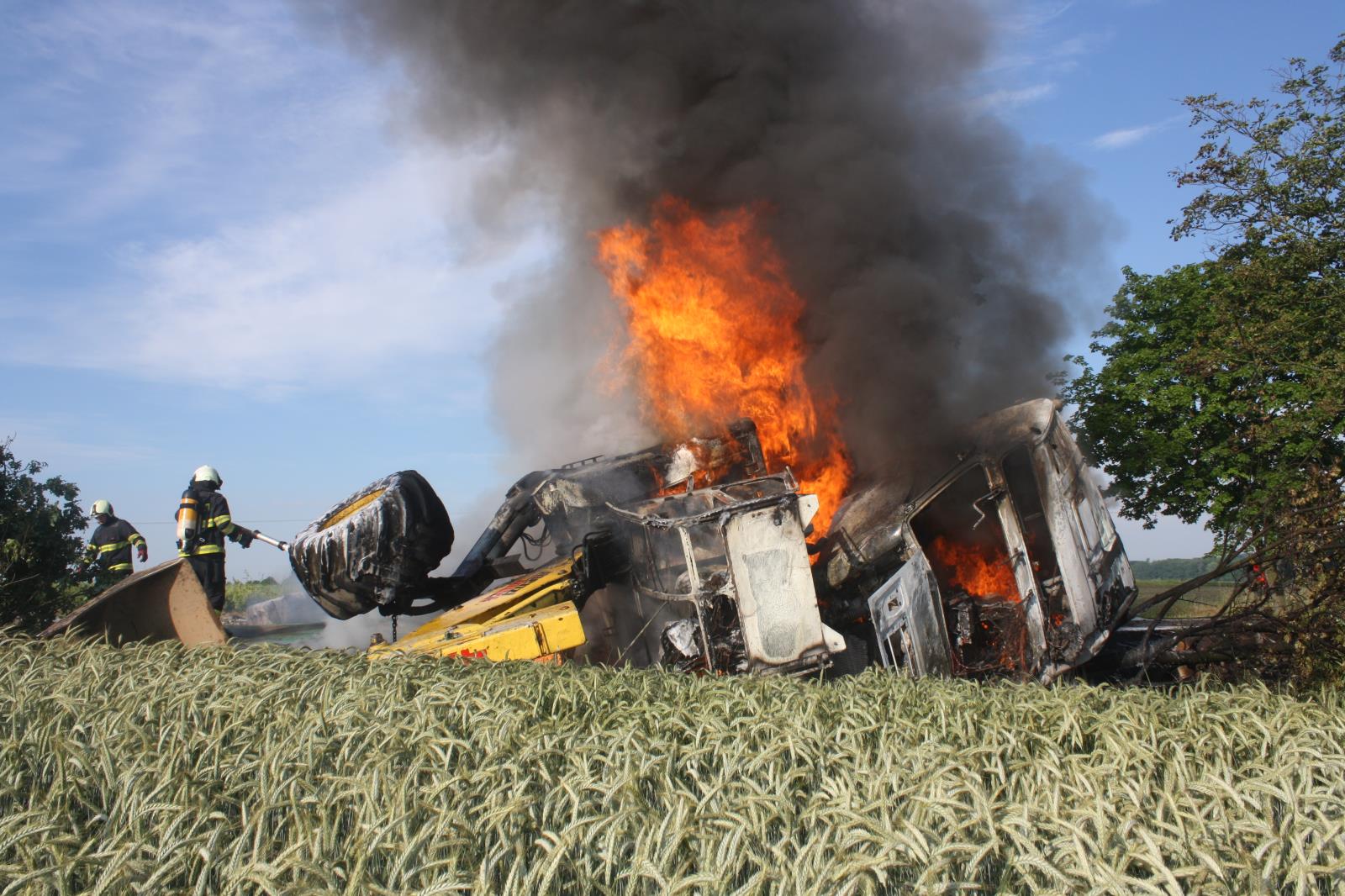 Ve shořelém kamiónu hasiči našli uhořelého řidiče