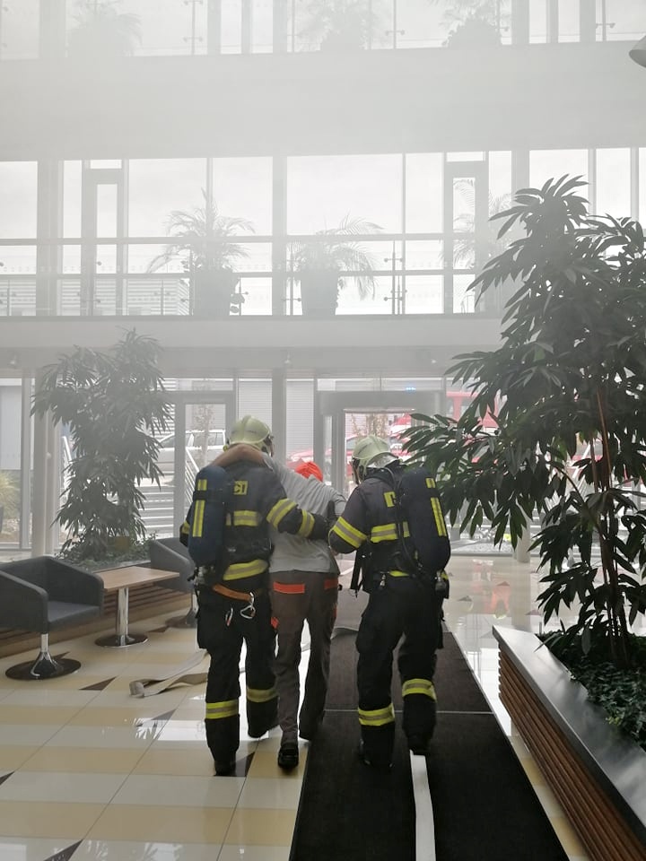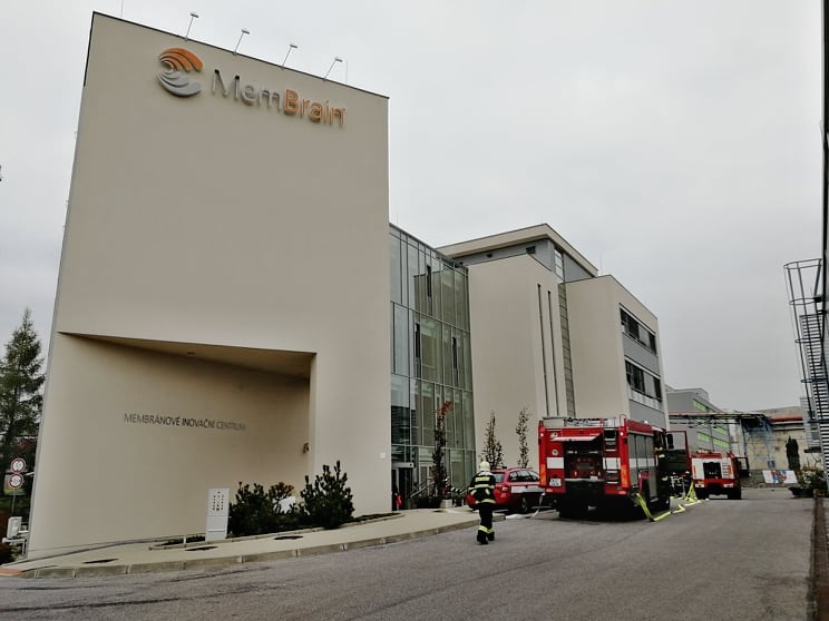 Z objektu, zvaném MIC (membránové inovační centrum), kde vědní disciplíny propojují výzkum a moderní technologické aplikace, se v rámci simulovaného požáru a uměle zadýmeného prostoru firmy evakuovalo bezmála sto zaměstnanců firmy před budovu. Dva chybějící zaměstnance nahlásila veliteli zásahu pracovnice laboratoře. Hasiči tyto osoby vyhledávali v dýchacích přístrojích a následně provedli záchranu osob za použití vyváděcích masek. Jedna z osob byla nalezena ve skladu materiálu v přízemí a druhá byla zachráněna z pátého nadzemního podlaží pomocí výškové techniky. Po lokalizaci a simulované likvidaci požáru byla budova odvětrána přetlakovým ventilátorem současně s instalovaným odtahem zplodin v budově. Po ukončení a vyhodnocení cvičení se hasiči seznámili s objektem.