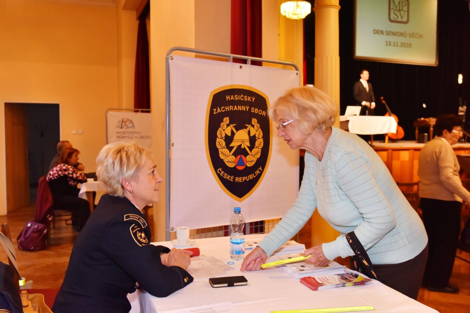 Jak předejít vypuknutí požáru, jak se chovat při požáru, jaká jsou rizika a jak funguje Hasičský záchranný sbor. To vše se senioři dozvěděli ve Společenském domě Střelnice Děčín. Akci pořádalo Ministerstvo práce a sociálních věcí ve spolupráci s OSSZ Děčín, Městskou policií Děčín, Českou obchodní inspekcí Inspektorát Ústecký a Liberecký, Zdravotnickou školou Děčín, Radou seniorů Ústeckého kraje a Hasičským záchranným sborem Ústeckého kraje. Na programu byly informace o důchodech a jejich výpočtech, o prevenci kriminality v souvislosti se seniory, na co si je třeba dát pozor, aby senioři nenaletěli novým nástrahám „šmejdů“, senioři a požární ochrana, prevence, kazuistika. Studenti Zdravotnické školy v průběhu akce bezplatně měřili tlak a diskutovali s účastníky akce.