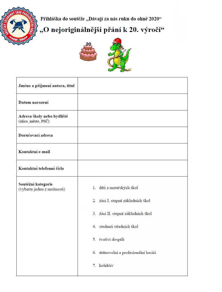 Vaše nejoriginálnější přání hasičům zasílejte na e-mail: vendula.horakova@pak.izscr.cz (předmět e-mailu „Nejoriginálnější přání k 20. výročí“), tel. 950 570 139