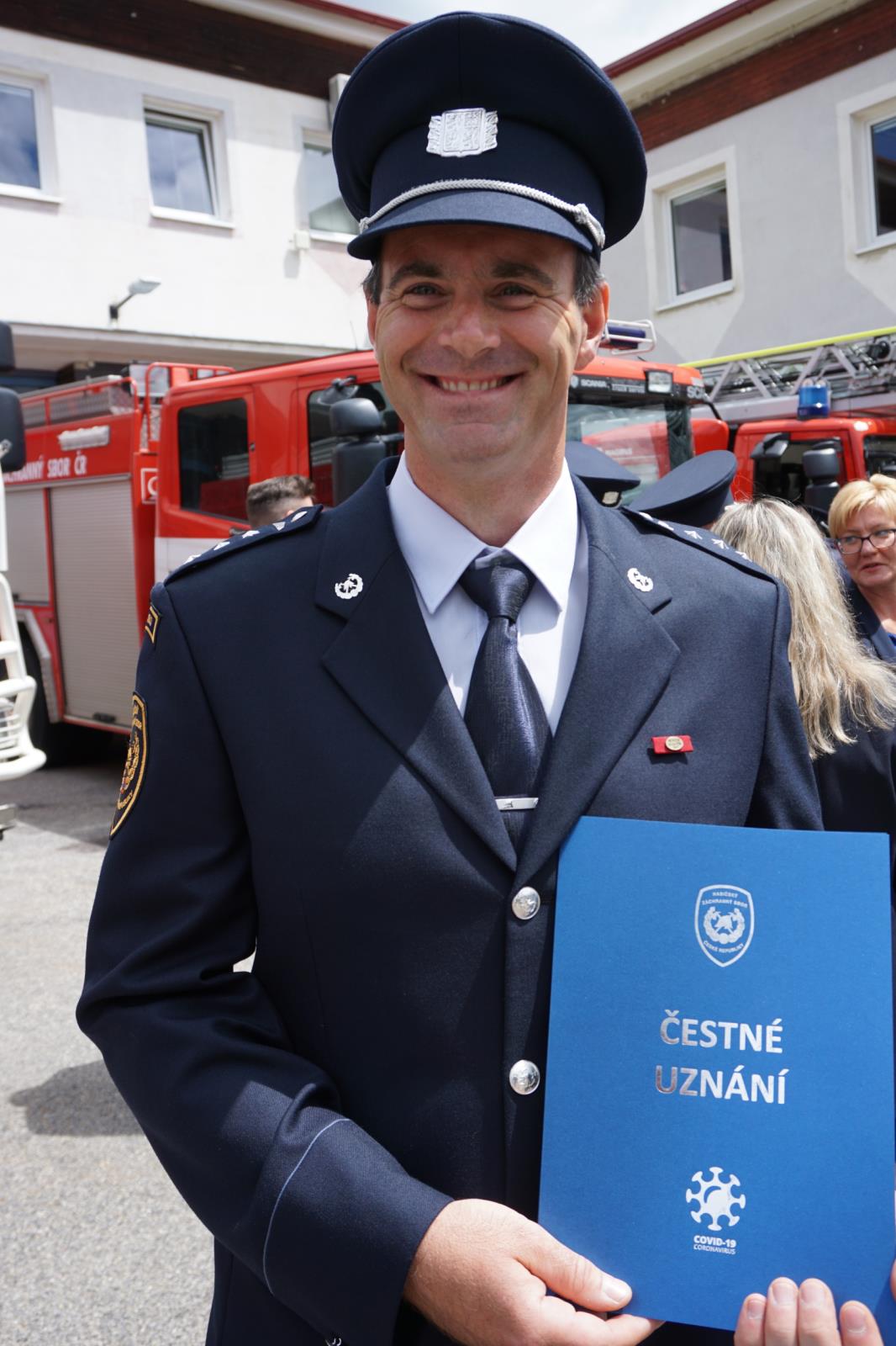Hasiči převzali z rukou krajského ředitele čestná uznání za práci při pandemii COVID 19