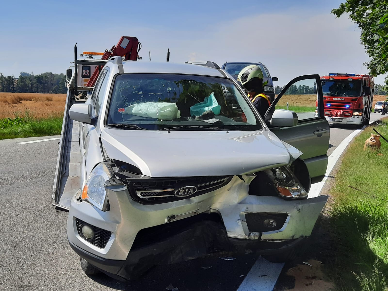 V osobních vozidle Seat cestovalo šest osob, z toho 2 osoby dospělé a 4 osoby nezletilé. Zraněné byly 3 nezletilé osoby, které byly v době příjezdu hasičů již v péči ZZS. Ostatní účastníci dopravní nehody vyvázli bez zranění. Táborská jednotka provedla zajištění místa nehody, protipožární opatření u obou havarovaných vozidel a z důvodu úniku provozních kapalin z vozu Kia hasiči místo úniku zasypali na silnici sorbentem. Po vyšetření nehody Policií ČR se na místo události dostavila odtahová služba, která ve spolupráci s hasiči naložila obě auta a odvezla. Po závěrečném úklidu vozovky od zbytků plastů a skel velitel zásahu předal nehodu policistům.