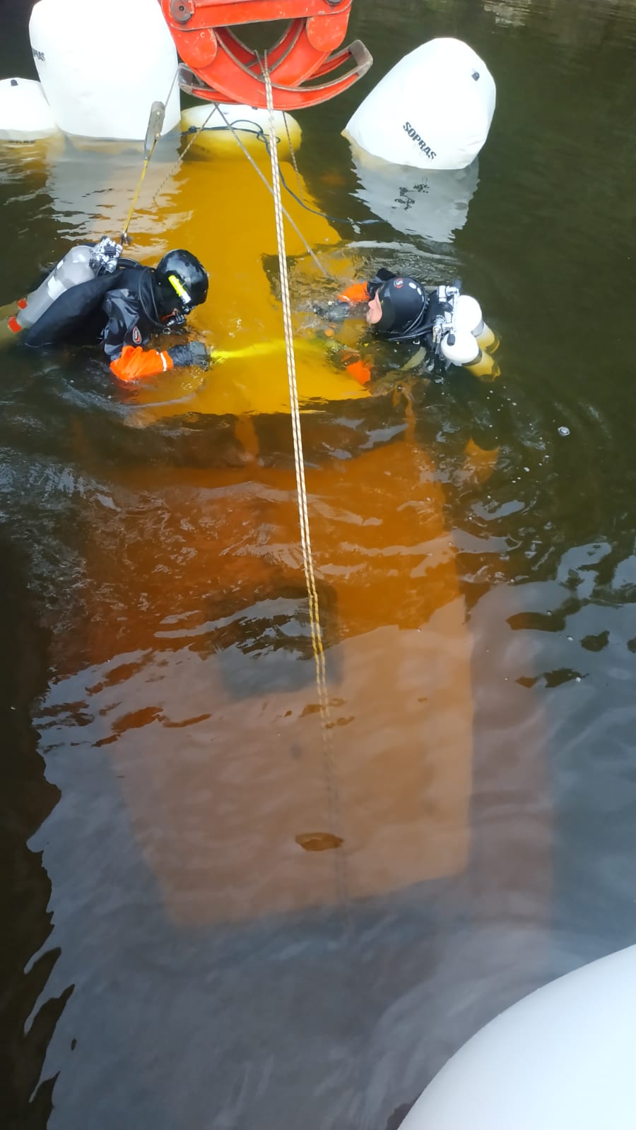 Zásah potápečské skupiny - vytažení potopené lodě