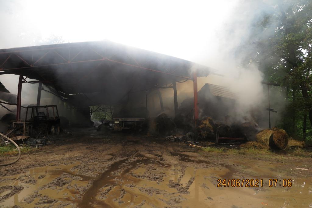 K požáru byli vysláni profesionální hasiči ze tří stanic, a to České Budějovice, Prachatice a Křemže. Poplach operační středisko vyhlásilo pro jednotky SDH obcí Žabovřesky a Netolice. Po průzkumu na místě požáru velitel zásahu podal zprávu, že se jedná o sklad o půdorysu 20 x 20 metrů, ve kterém jsou uskladněny balíky slámy a stroje. Vše je zasaženo požárem, hala hoří v plném rozsahu. Uvnitř nebyla žádná osoba, nikdo nebyl zraněn.