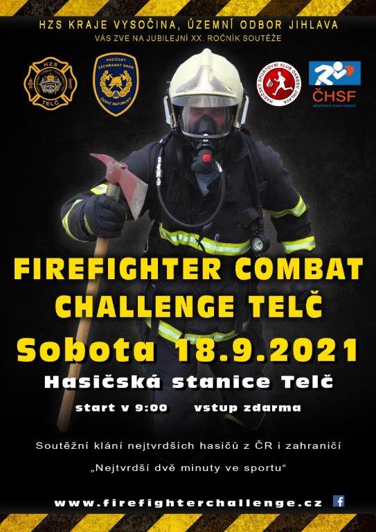 Srdečně zveme na XX. ročník Hasičského pětiboje – Firefighter Combat Challenge Telč, který se uskuteční dne 18. září 2021 od 9.00 hod na stanici Hasičského záchranného sboru Kraje Vysočina v Telči.