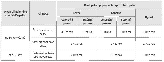 - před výměnou spotřebiče paliv s výjimkou výměny spotřebiče stejného druhu, typu, provedení a výkonu za podmínky, že způsobilost spalinové cesty je potvrzena zprávou o provedení čištění a kontroly spalinové cesty,