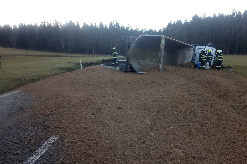 Čtyři jednotky hasičů byly zalarmovány kvůli ohlášené dopravní nehodě kamionu, který boural na silnici č. 36 mezi Borohrádkem a Česticemi. Vozidlo převážející písek se převrátilo, náklad se rozsypal přes celou šířku komunikace a řidič zůstal v kabině zaklíněn. Řidiče hasiči vyprostili a předali ho do péče zdravotnické záchranné služby. Z havarovaného automobilu unikal hydraulický olej, který jednotky zachytávaly do nádob, dále prováděly opatření proti vzniku požáru. Úklid vozovky zabezpečili silničáři, kamion musela vyprostit specializovaná firma. Hasiči se na závěr postarali o finální úklid vozovky. Po celou dobu zásahu byla komunikace č. 36 neprůjezdná, odklon dopravy zajišťovali policisté, kteří zároveň zjišťují příčinu dopravní nehody. Zpět na základny se poslední jednotky vracely po 13. hodině.