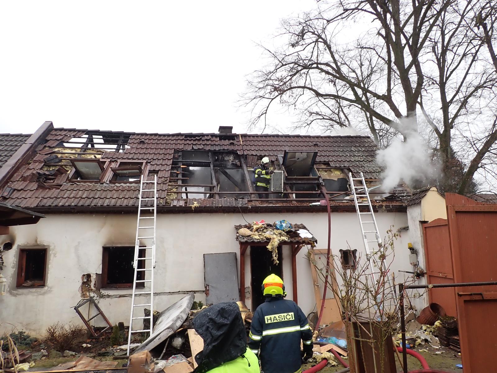 Hasiči na místě průzkumem zjistili, že hoří prakticky celý obytný dům. Požár zasáhnul přízemí o půdorysu přibližně 10 x 7 metrů a šel do podkroví a střechy. Teprve po hodině hašení, kdy bylo nutné zasahovat v dýchací technice, se hasičům podařilo dostat požár pod kontrolu. Zcela uhašen byl v 14:18 hodin.