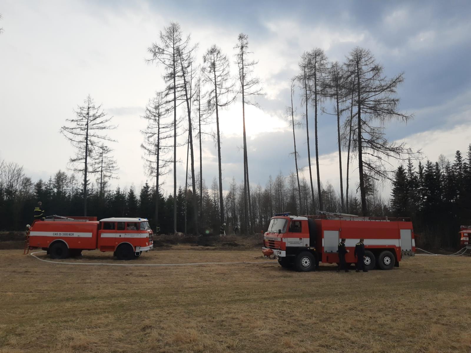 Tři jednotky hasičů – profesionální ze stanice Dačice a dobrovolné obcí Cizkrajov a Slavonice – spolupracovaly u Cizkrajova u požáru lesního porostu.