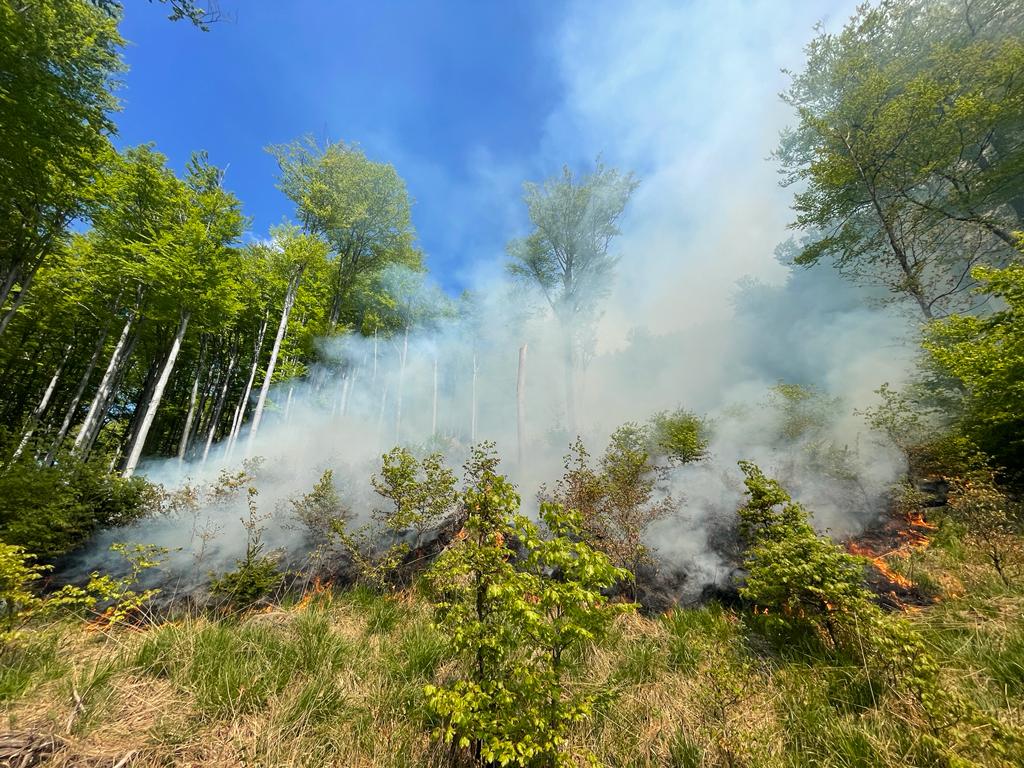Požár Jedlová (3).jpg9. 5. 2022 13:33 Sedm jednotek vyjelo k požáru lesního porostu u Jedlové, okres Děčín. Hoří na ploše 100x100 m v špatně přístupném terénu. Hasiči zamezili šíření požáru do boku a vzhůru do stráně, částečně požár lokalizovali. Byl vyhlášen druhý stupeň poplachu z důvodu počtu nasazených jednotek.