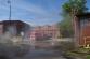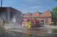 Mezitím hasiči postavili venku dvě štítové proudnice na návětrné straně, které vytvářely vodní stěnu jako zábranu před únikem chloru a před vytvořením toxického mraku chloru. Vodní clonu pomáhal vytvářet shora proud vody z koše automobilového žebříku.