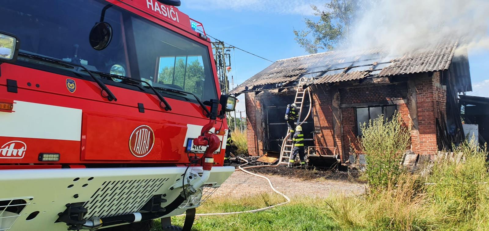 Vyhořela bývalá hasičská zbrojnice, nyní dílna s obytnou částí