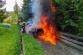 Automobil byl v době příjezdu první jednotky na místo zcela zasažen plameny, ty se rozšířily i na přilehlý plot a stromky.