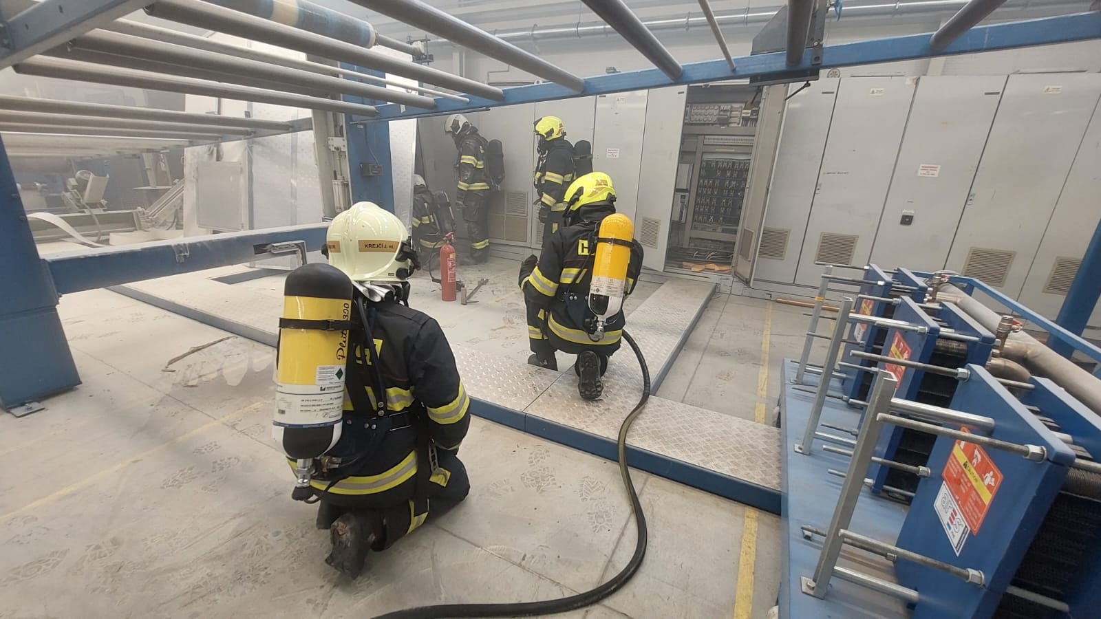 Hasiči odpojili drtič od elektrického proudu a nevodivým hasivem CO2 požár dostali rychle pod kontrolu. Zároveň s hašením jednotka ze zakouřené haly evakuovala 7 zaměstnanců firmy. Nikdo z nich nebyl zraněn, ZZS nebyla povolána. Když k požáru přijela dobrovolná jednotka, byla také zapojena do hasebních prací. Úplnou likvidaci požáru velitel zásahu nahlásil v 14:31 hodin. Na odvětrání haly hasiči nasadili přetlakový ventilátor. Celé požářiště v rámci závěrečného průzkumu hasiči zkontrolovali termokamerou. Zásah byl veden v dýchací technice.