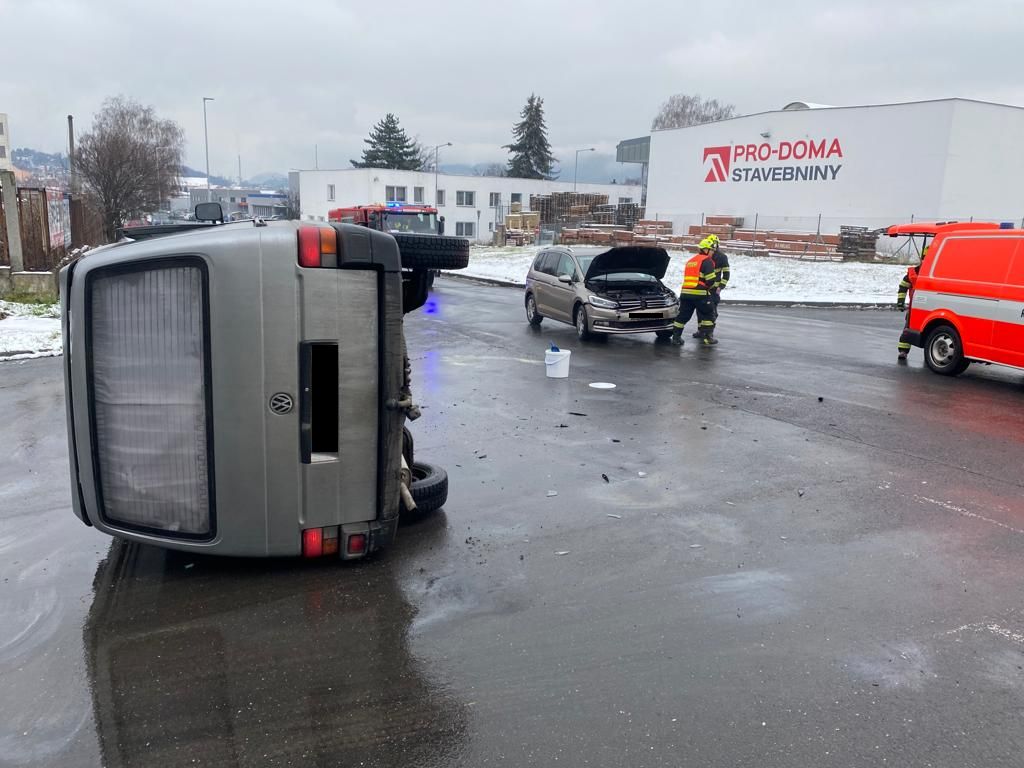 18. 1. 2023 12:00 Jednotka ze stanice Ústí nad Labem vyjela k dopravní nehodě dvou osobních aut v Jateční ulici v Ústí nad Labem. Jedno z aut se převrátilo na bok. Při nehodě byl jeden člověk zraněn. Hasiči mu poskytli předlékařskou pomoc a předali jej do péče Zdravotnické záchranné služby. Bylo provedeno protipožární opatření a asanace vozovky.
