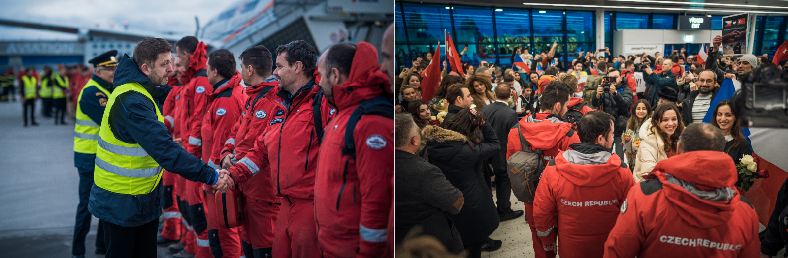 Tým přivítal ministr vnitra Vít Rakušan, poděkovat přišel rovněž i turecký velvyslanec v Česku Egemen Bagis, nechyběl ředitel HZS hlavního města Prahy brig. gen. Luděk Prudil. V příletové hale překvapila záchranáře početná turecká skupina, která rovněž přivítáním poděkovala za odvedenou práci a samozřejmostí byli rodinní příslušníci.