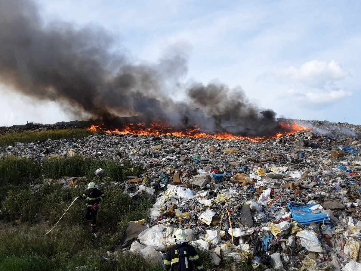 Požár komunálního odpadu na skládce v Růžodolu u Litvínova