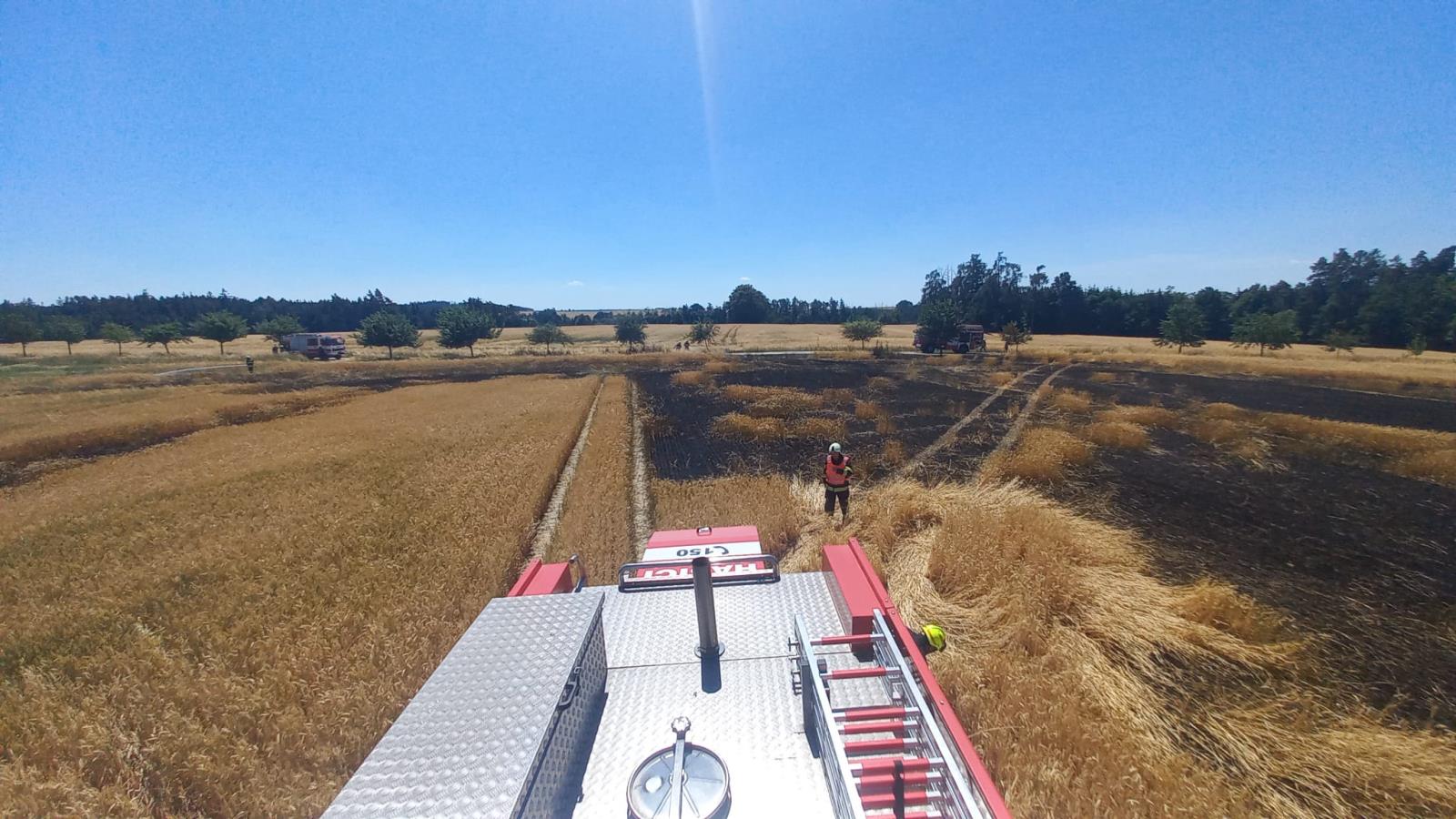 12:40 - Sedlečko u Soběslavě - požár vzrostlého obilí na ploše 100 x 100 metrů - zasahovali profesionální hasiči ze stanice Soběslav a dobrovolní hasiči obcí Přehořov a Tučapy,