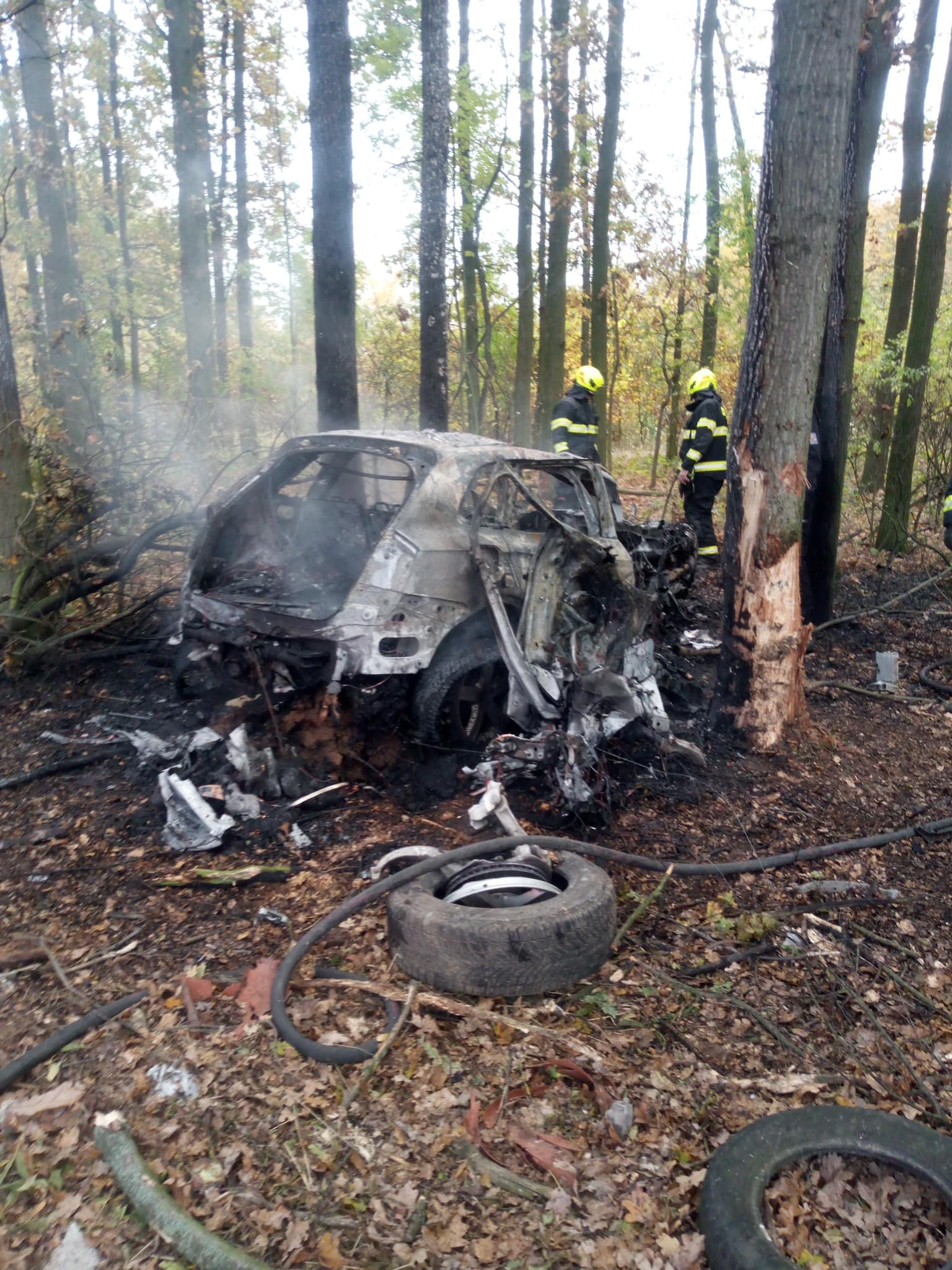Složky IZS spěchaly v pátek odpoledne k ohlášené dopravní nehodě, ke které došlo na silnici č. 323 mezi obcemi Roudnice a Boharyně na Královéhradecku. Podle oznámení mělo havarovat jedno osobní vozidlo, které se ocitlo mimo komunikaci mezi stromy a začalo následně hořet. Při příjezdu hasičů na místo události byl vrak auta v plamenech, na jejich likvidaci nasadili vysokotlaký proud vody. Po uhašení požáru objevili hasiči uvnitř vozu dvě osoby bez známek života. Místo zásahu si po zajištění převzali policisté, kteří okolnosti události vyšetřují. Komunikace byla uzavřena až do večerních hodin. Hasiči zabezpečovali místo události, dále provedli vyprošťovací práce a pomohli naložit auto na odtah. Na místě zasahovaly profesionální jednotka ze stanice Hradec Králové – Pražská a JSDH Nechanice.