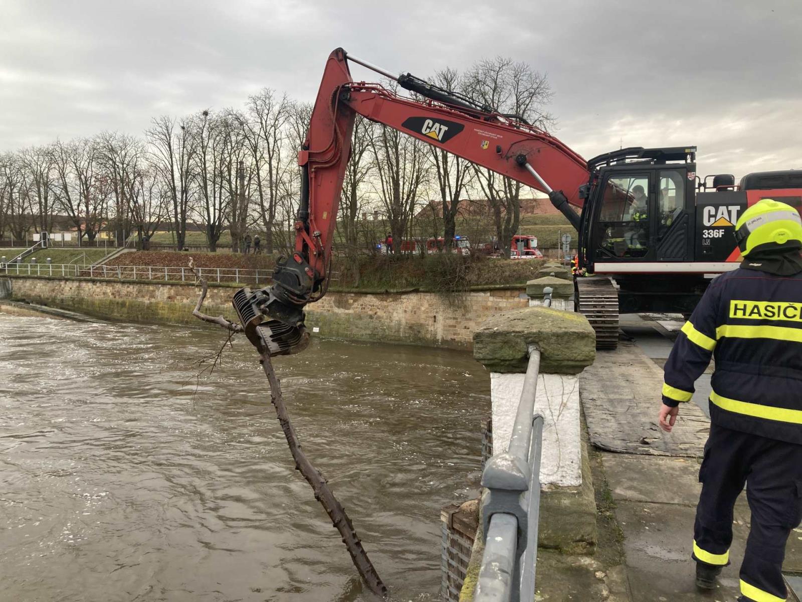 5. 1. 2024 Technické služby Města Terezín nás požádaly o odstranění naplavených klád z minulých dnů pod mostem v Pražské ulici Terezíně. Na místo vyjela jednotka ze stanice Litoměřice, dobrovolná jednotka z Terezína a pásové rypadlo s kleštěmi ze Záchranného útvaru HZS ČR Jihlava. Klády vytahujeme, rozřezáváme a Technické služby je odvážejí.