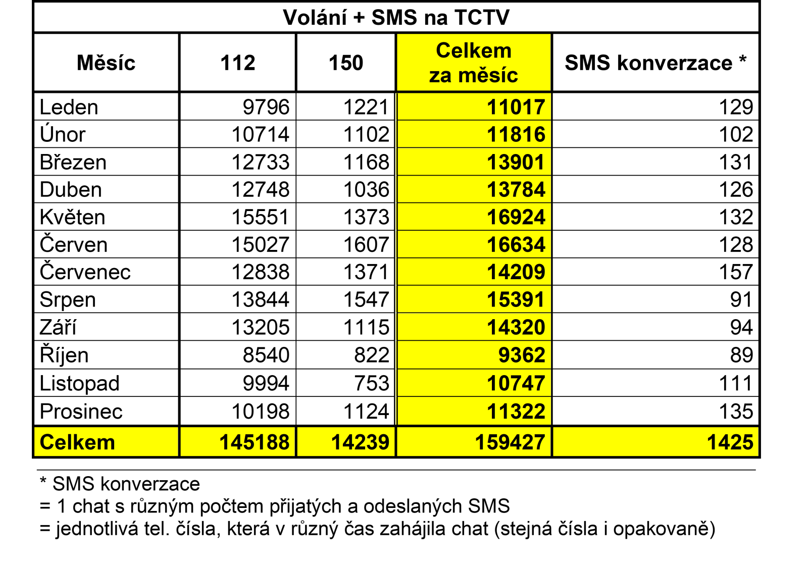 Oproti předchozímu roku se ve Zlínském kraji v roce 2023 navýšil počet volání na tísňovou linku 112 o 48 141 hovorů, na tísňovou linku 150 přibylo 3 914 hovorů. Celkový počet volání se zvýšil o 52 055 hovorů. Statistickým průměrem z výše uvedeného vyplývá, že každý den odbaví operátoři 437 tísňových hovorů, což představuje v průměru 1 hovor každé 3 až 4 minuty.