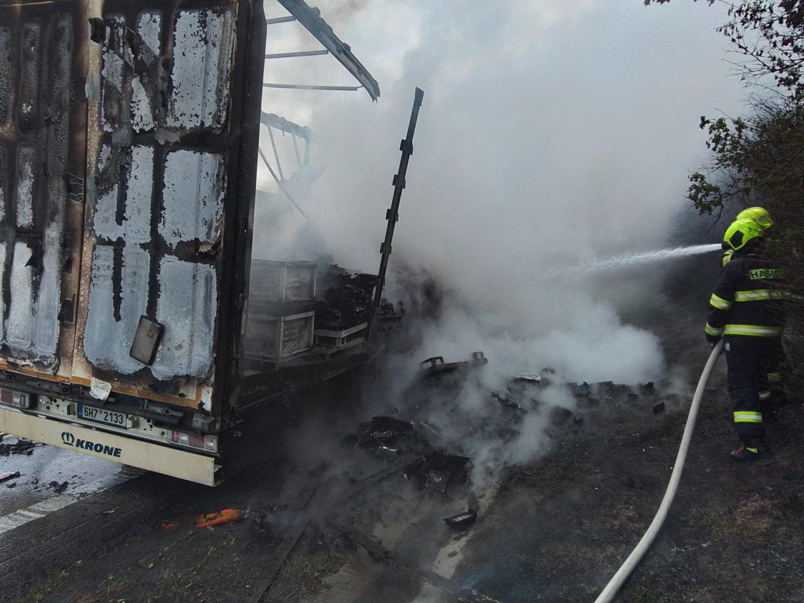 18. 4. 2024 11:59 Likvidujeme požár návěsu kamionu na dálnici D8 u Siřejovic směr Praha. Návěs se podařilo odpojit a zabránit rozšíření požáru na tahač. Na místě zasahuje jednotka ze stanice Lovosice a jednotka ze stanice Litoměřice. Kamion vezl automobilové díly. Doprava je s omezením vedena levým jízdním pruhem.