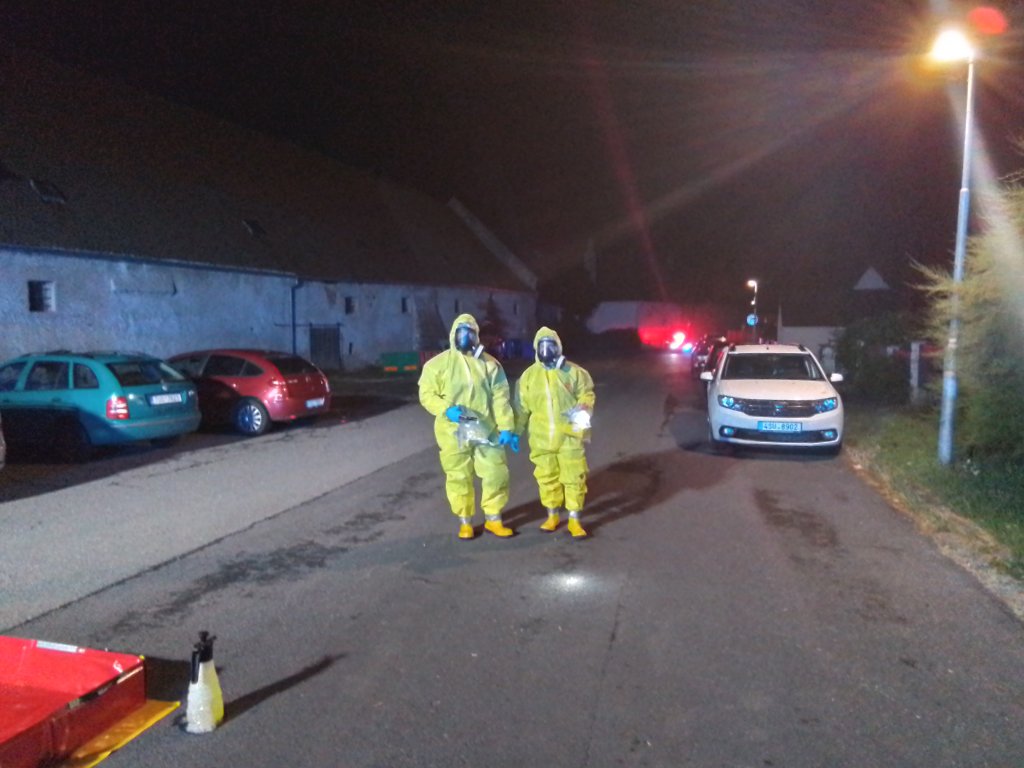 2024_08_08-Ploskovice_LT8. 8. 2024 v 19:47 hodin. Hasiči ze stanice Litoměřice, Úštěk a Ústí nad Labem zasahovali u podezřelého balíku označeného jako „radioaktivní odpad“ u popelnic v obci Ploskovice na Litoměřicku. Po radiologickém průzkumu bylo zjištěno, že se jedná o shnilé potraviny.