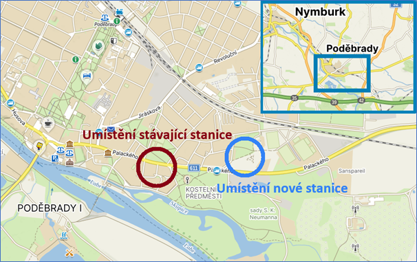 Místo realizace projektu se nachází v jihovýchodní části města Poděbrady v zastavěném a stabilizovaném území obce s další občanskou vybaveností a dobrou dopravní dostupností jak do dalších částí města Poděbrady, tak do ostatních částí zásahového obvodu jednotky HZS Poděbrady.