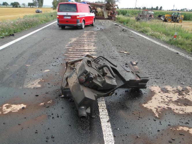 Nehoda kamionu a traktoru zablokovala na dopoledne silnici z Hradce Králové do Jaroměře