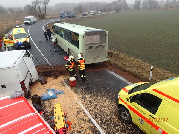 Vážná dopravní nehoda dodávky a autobusu u Krnova