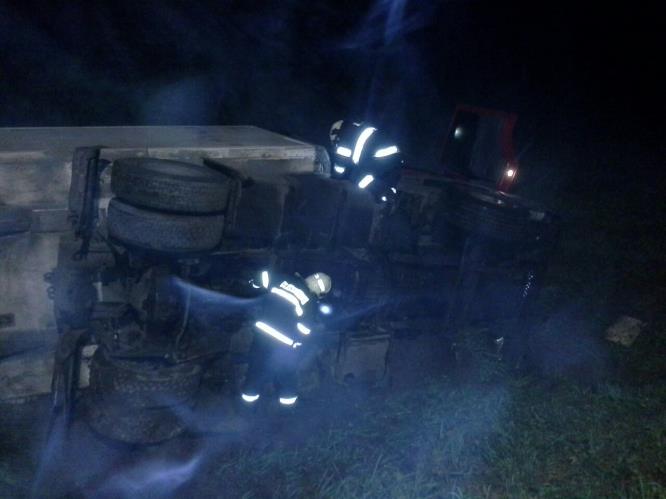 Hasiči odstraňovali následky kolize kamionu plného brambor a požár domu