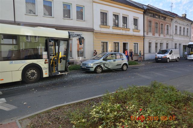 Dopravní nehoda dvou osobních aut a městkého autobusu v Chomutově.