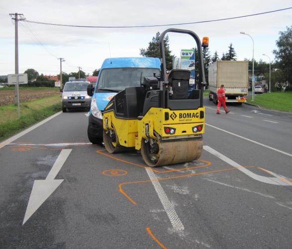 Střet dodávky s válcem. Nehoda skončila bez zranění.