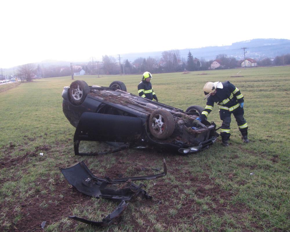 Osobní vozidlo skončilo převrácené v poli.