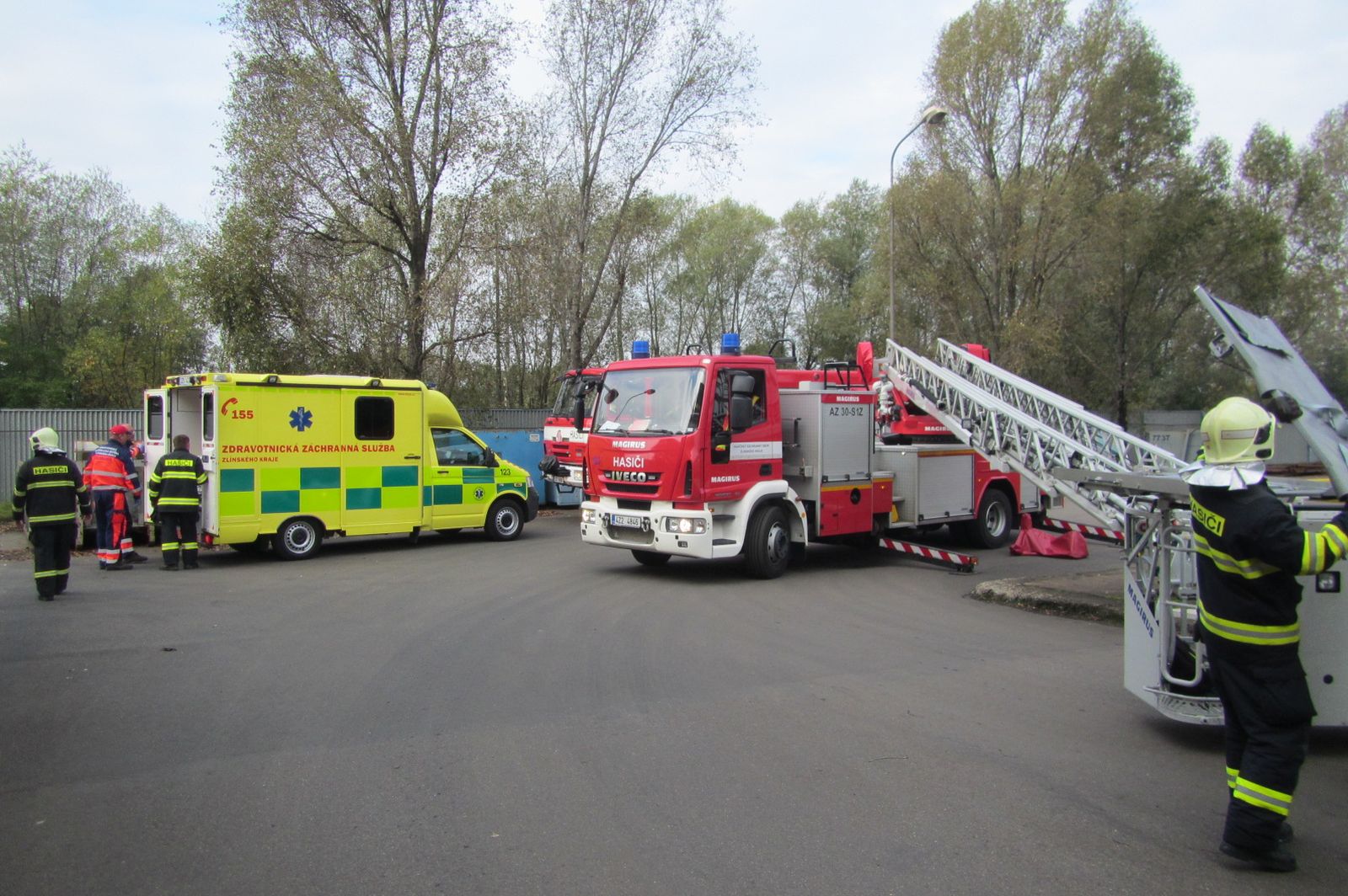 Muž zkolaboval na střeše budovy. K jeho záchraně hasiči použili výškovou techniku