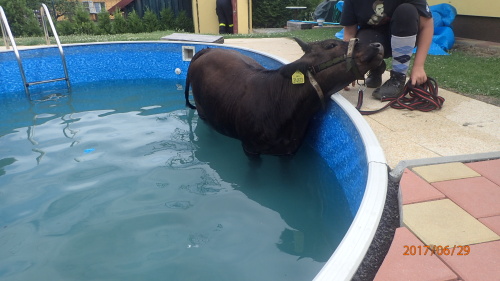 Záchrana krávy ze zahradního bazénu v Orlové pomocí lávky