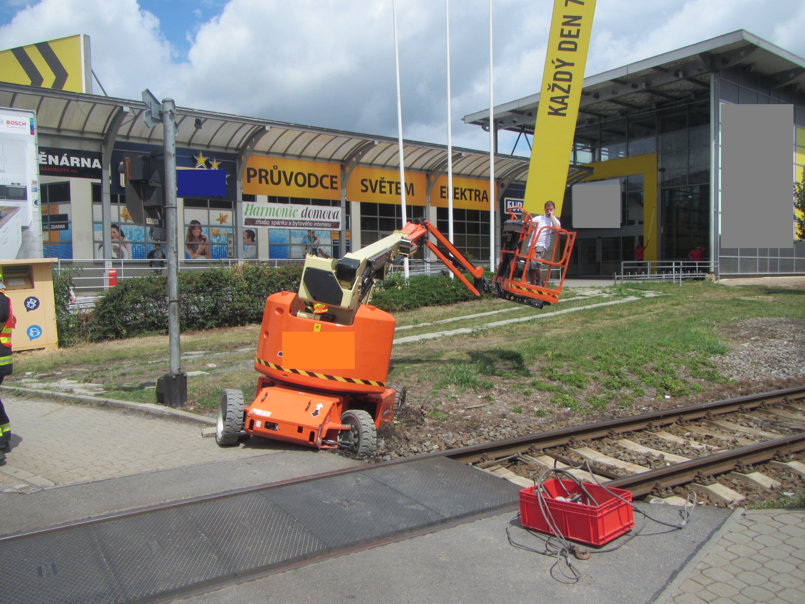 Teleskopická plošina zapadla v blízkosti železniční trati. Provoz na trati byl dočasně zastaven.