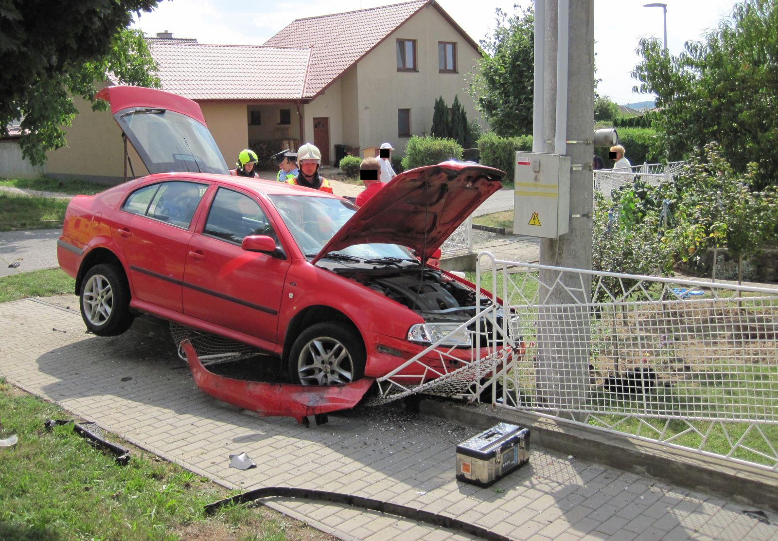 Vozidlo zastavilo o plot domu. Hasiči poskytli první pomoc zraněnému řidiči