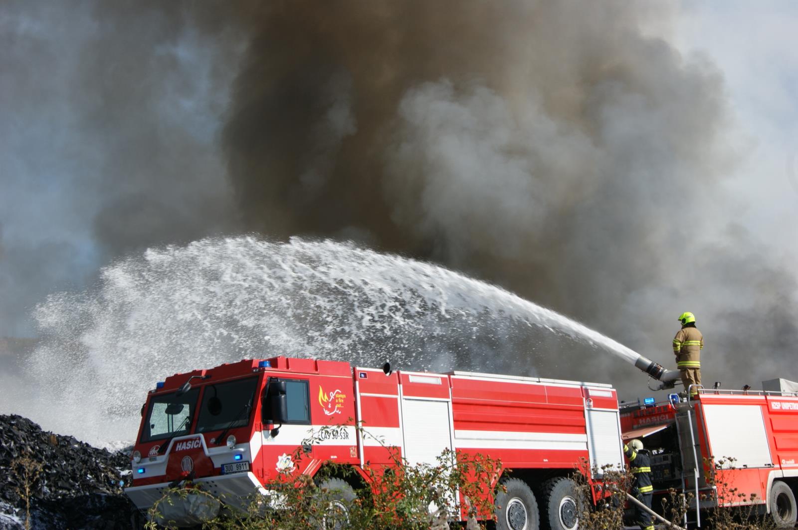 Požár skládky komunálního odpadu v Růžodolu na Mostecku