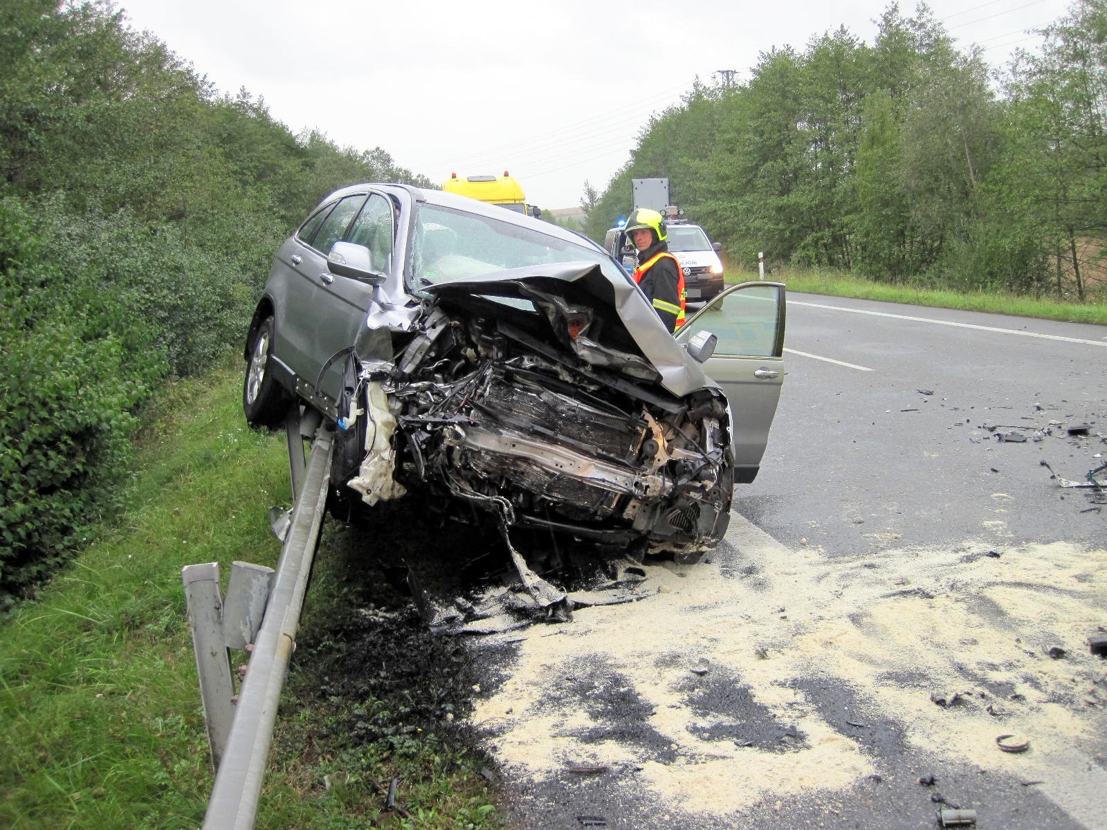 Střet vozidel na silnici I/50 u obce Veletiny si vyžádal dvě zranění.
