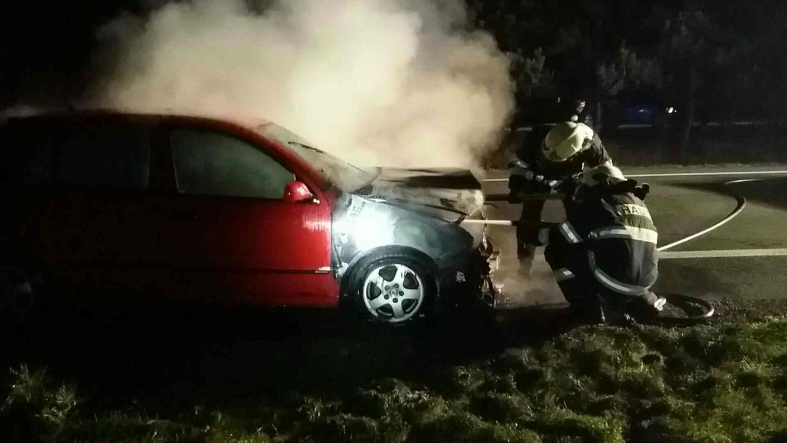 Automobil řidiči za jízdy vzplál