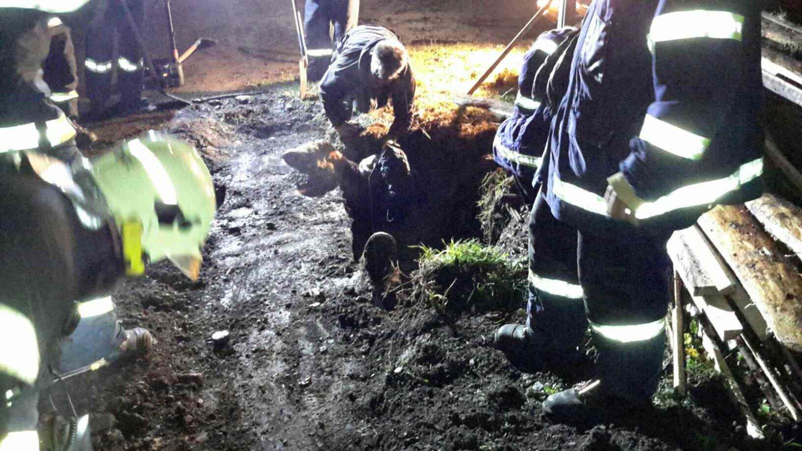 Koně z jímky vytáhli hasiči pomocí popruhů